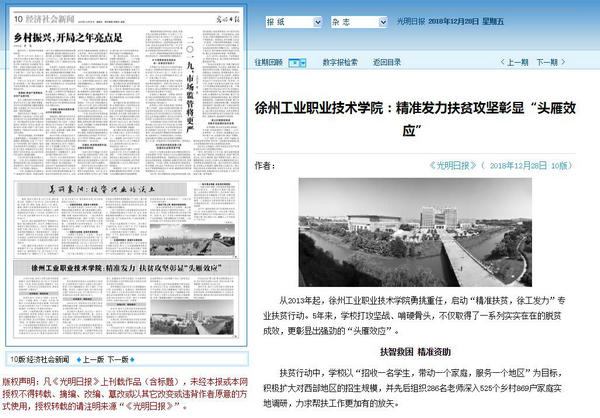 从2013年起,徐州工业职业技术学院勇挑重任,启动“精准扶贫,徐工发力”专业扶贫行动。5年来,学校打攻坚战、啃硬骨头,不仅取得了一系列实实在在的脱贫成效,更彰显出强劲的“头雁效应”。